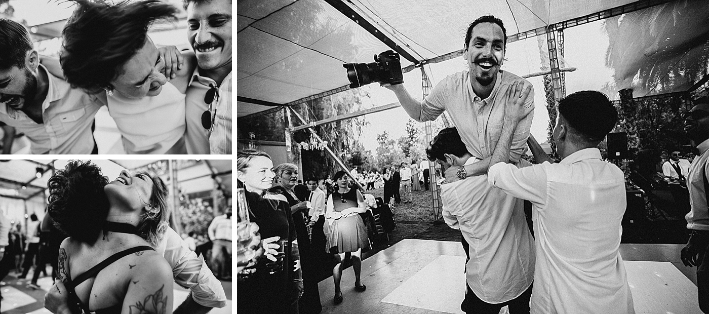 En este matri nos encontramos con puros amigos danzando y en las fotos nos acompaño nuestra amiga Camila Espínola, a la que verán literalmente arriba de los invitados jaja… en este fiestón todos éramos parte de la locura 🙂